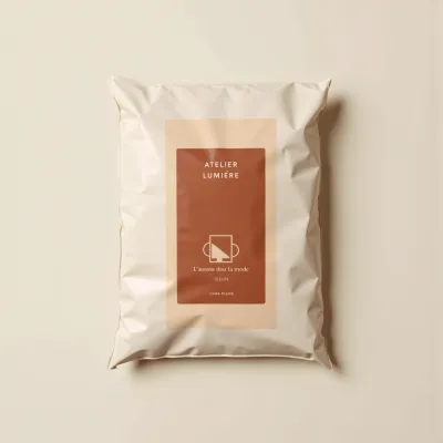 Plastic mailing bag packaging for Atelier Lumière