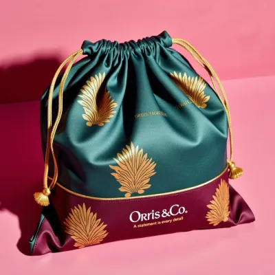 Drawstring bag packaging for Orris & Co.